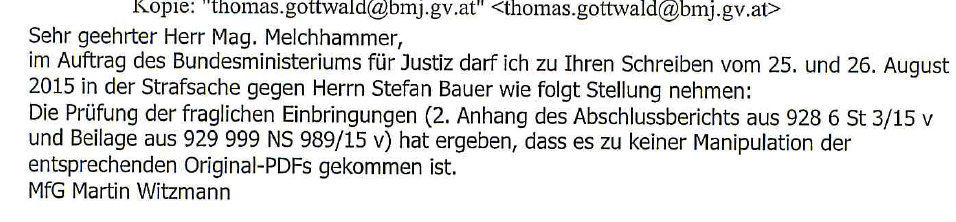 Mit diesem Mail widerlegt der Experte des Bundesrechenzentrums die Schutzbehauptung von Brandauer klar und deutlich. Es kam zu keiner Manipulation der entsprechenden Original-PDFs.